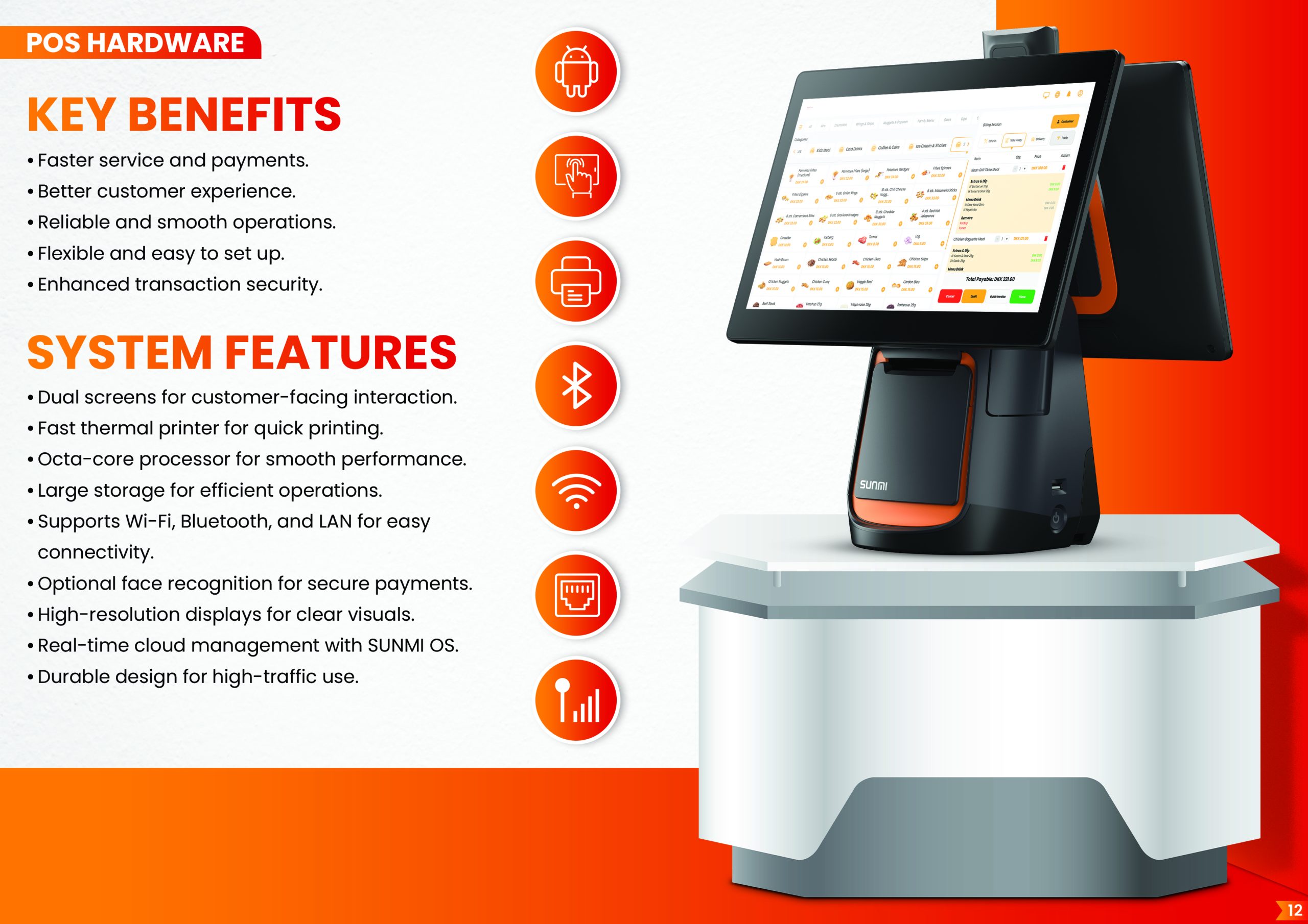 Our cash terminals give your business everything it needs to handle orders, payments, and real-time reporting from one fast, reliable system. Payment terminal included, wireless capability built in, and fully integrated with your kitchen, your backoffice, and your entire Digital Kiosk ecosystem.