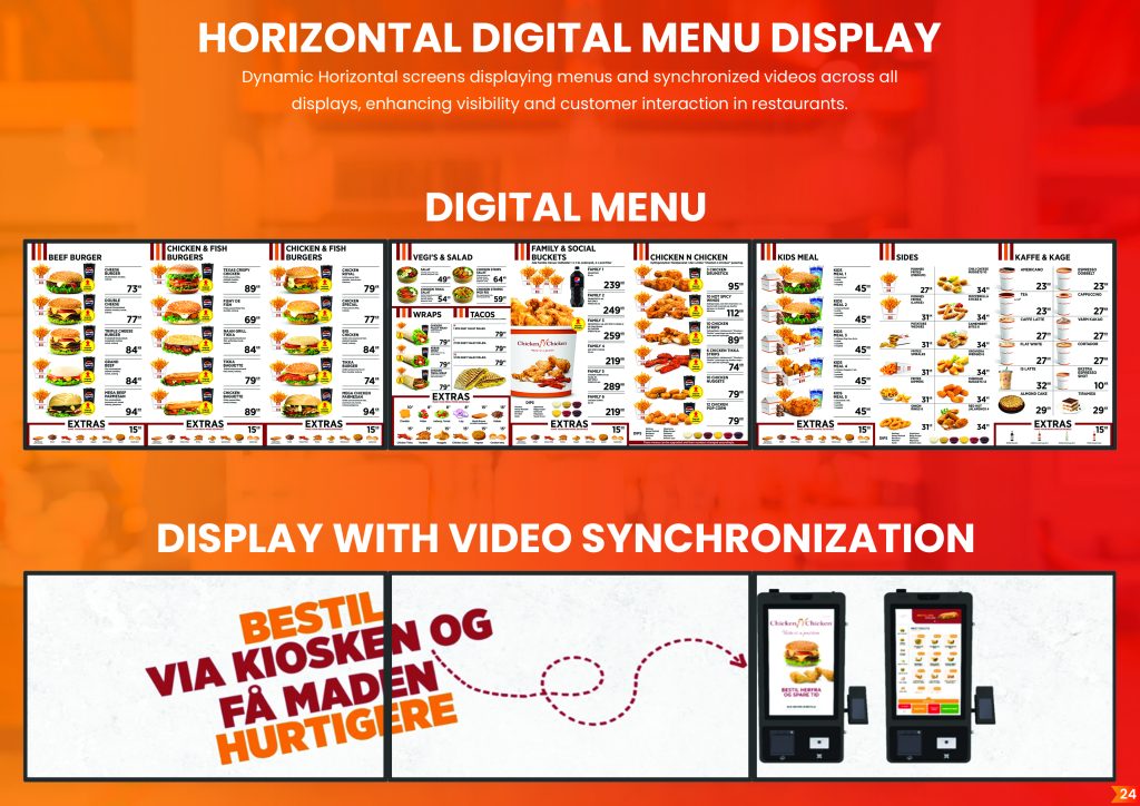 We configure your smart TV menu system around your brand, your menu structure, and the specific screens you are using. Whether you have one screen above the counter or twelve screens across a restaurant chain, we set up the content management, the display zones, and the campaign scheduling so everything runs exactly the way you want it. Our system integrates with your existing Digital Kiosk ecosystem, so your menu content is always in sync with your POS pricing and your current product range. When you update a price in your backoffice it updates on screen automatically, without any manual step in between.