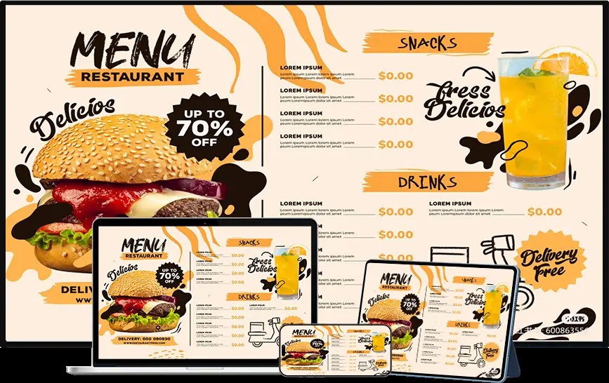 digik_main2025-09-21T00:21:28+02:00Skip the complicated steps and use the free template library to quickly create a digital menu board that matches your brand image.